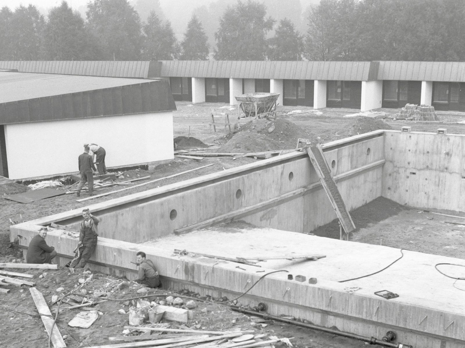 Construction began in 1962, but the ground proved to be soft and marshy, so the project took longer than expected. Installing the pump system for the pool involved digging in liquid mud, which is hard to keep out of the way when casting foundations. A 1962 notice in the info for IKEA staff – who were particularly looking forward to the pool – kept people’s hopes up. The writer promises that the building contractor is “…of an optimistic nature, and his co-workers appear to be stimulated by the challenges, so I think we’ll have a swimming pool in due course.” Not until almost two years later, in February 1964, could the magazine note: “Finally! After much grief and heartache, we can now give the motel a test run. … I wonder how many of us will get webbed feet eventually?”