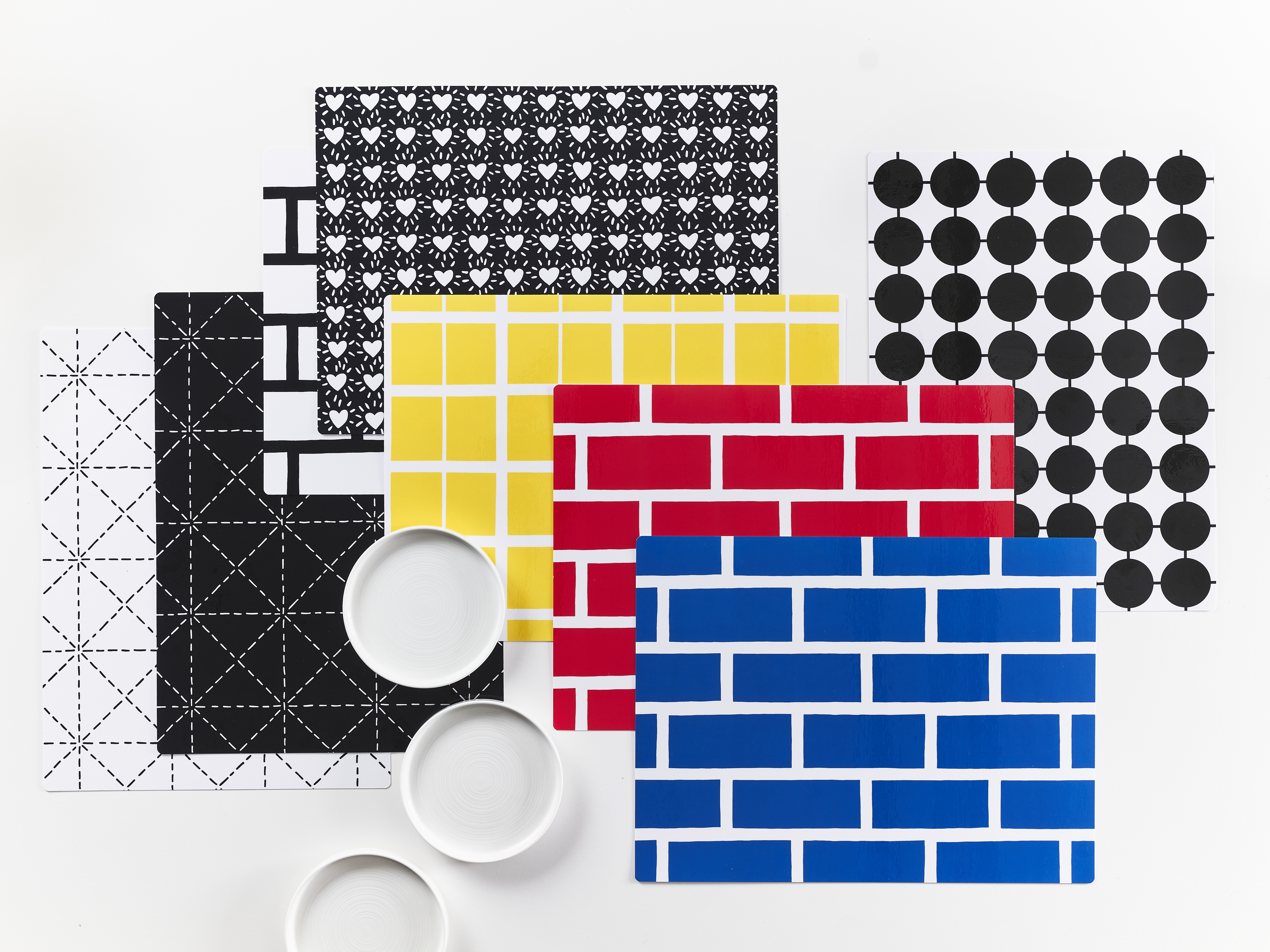 I samband med utställningen Magiska mönster fick vi möjlighet att släppa en kollektion med RANDIG BANAN, ett mönster från 1985, designat av Inez Svensson, en av de Tio svenska formgivarna i designkollektivet 10-gruppen. Kollektionen innehåller bland annat en poster, kökshandduk, glasunderlägg och anteckningsböcker.