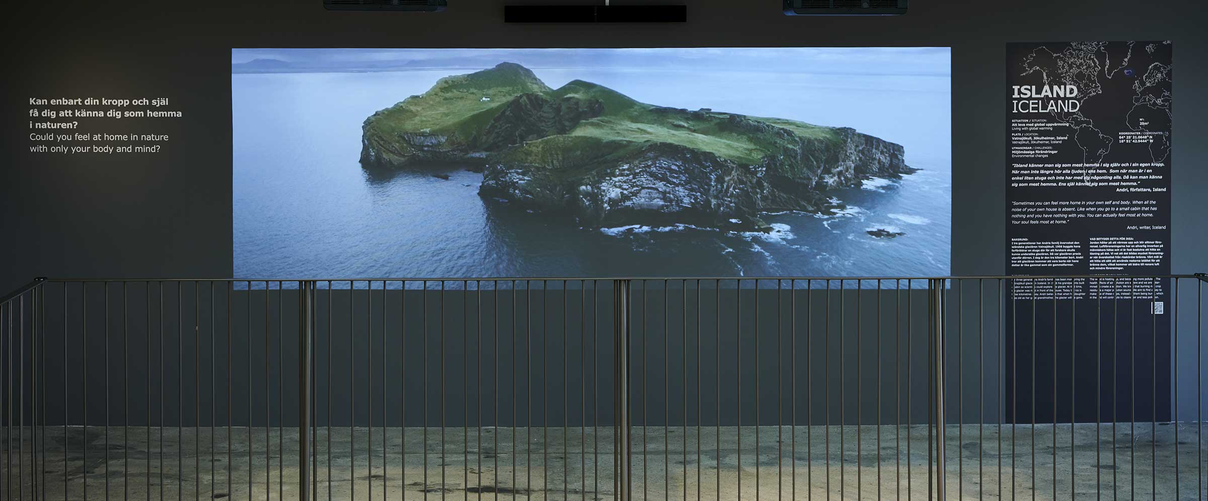 In the exhibition visitors are exposed to experiences and questions with the purpose of making them reflect and express their own ideas about what it is that creates the feeling of home. Different perspectives are explained, such as the influence of materials, social relationships, rituals and even how your own wellbeing or state of mind can influence the feeling of home.